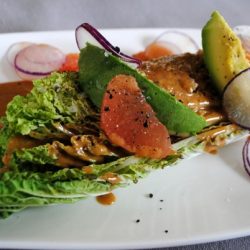 Though chef Todd recommended the Red, White, & Bleu salad, we opted for the Warm Napa Wedge which was a seared head of Napa cabbage with fresh avocado, radishes, and grapefruit topped with a spicy miso dressing.