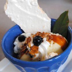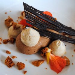 Normally I would skip dessert after such a filling dinner, but we couldn’t resist the descriptions of the sweet treats. I chose the Revival Ice Cream Lemon Meringue Sundae which included three scoops of lemon ice cream, large slabs of meringue, housemade coriander caramel, and two Luxardo cherries. And we ordered the Peanut Butter Cremeux that would satisfy a grown-up Reese’s lover.