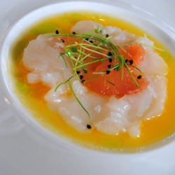 We started with the Diver Scallop Crudo, which was served in a passionfruit and gin vinaigrette, drizzled with chive oil, and topped with fresh grapefruit.