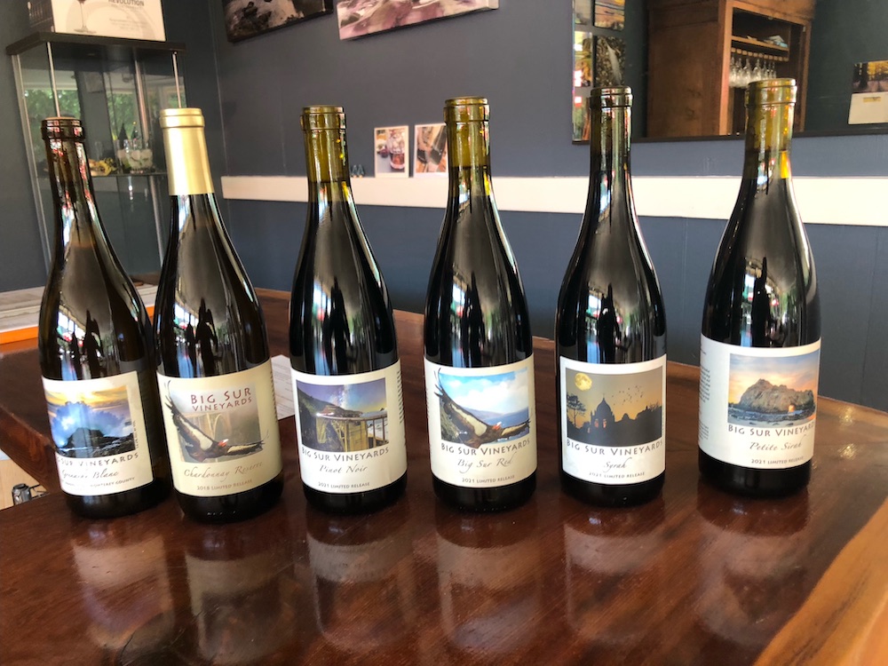 On a recent visit, as Cowboy Pete circled around the parking lot in his old tractor driven wagon, ferrying visitors around the Village as he’s done for years, we tried her current lineup, which included a 2019 Grenache Blanc, 2021 Tondre Pinot Noir, 2021 Big Sur Red, and a 2021 Petite Sirah from the same vineyard. It was the Friday before Mother’s Day weekend, and Carey had just received a shipment of the sparkling rosé she had made especially for the weekend and the summer rush.