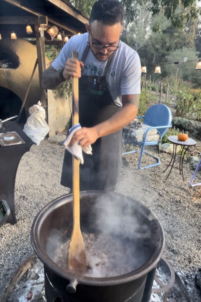 Chef Greg Karjala tends the heirloom caldron (Photo: Deborah Luhrman)