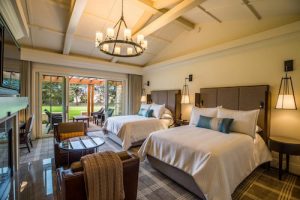 Guest rooms, which are located in two-story hillside buildings, include fireplaces, luxurious baths, 55-inch flat-screen TVs and balconies overlooking the golf course. Prices start at $915 a night.