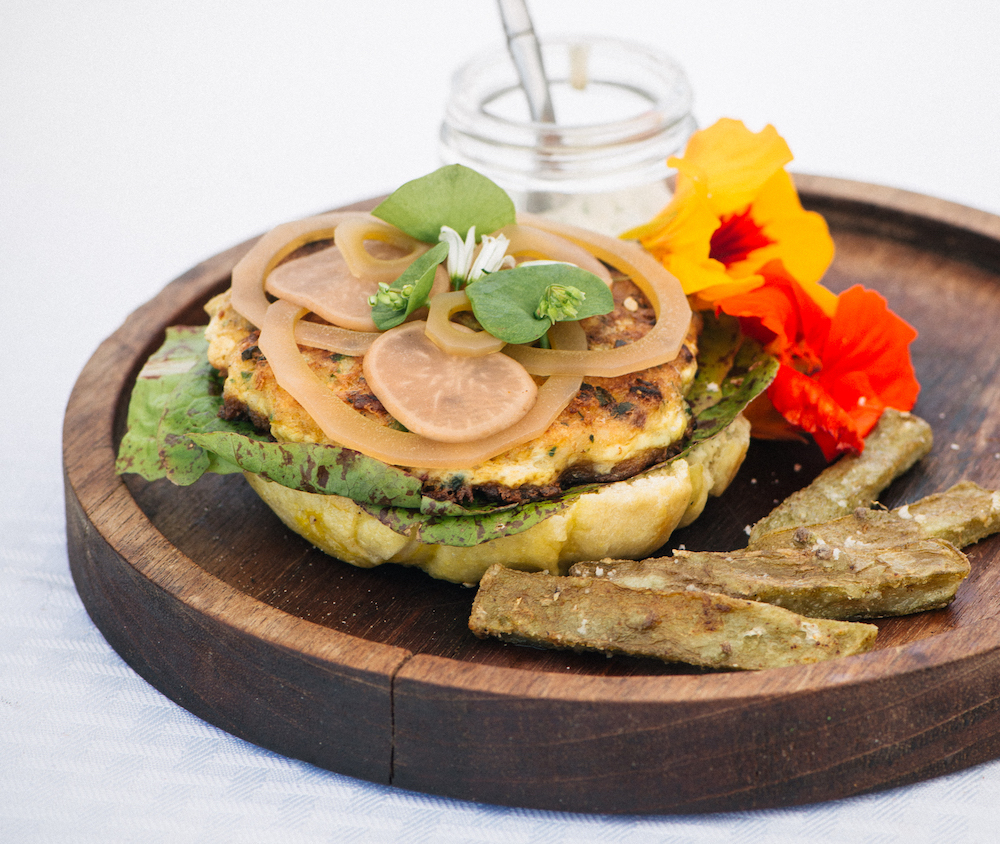“Personally I really wanted to work with perch since it’s great to diversify our catch and work with all types of fish,” she says. “The fish burger is perfect for that; it also works with any garden veggies, so you can throw in whatever’s in season or local when you’re wanting to make it—it doesn’t have to be the veggies I used.”
