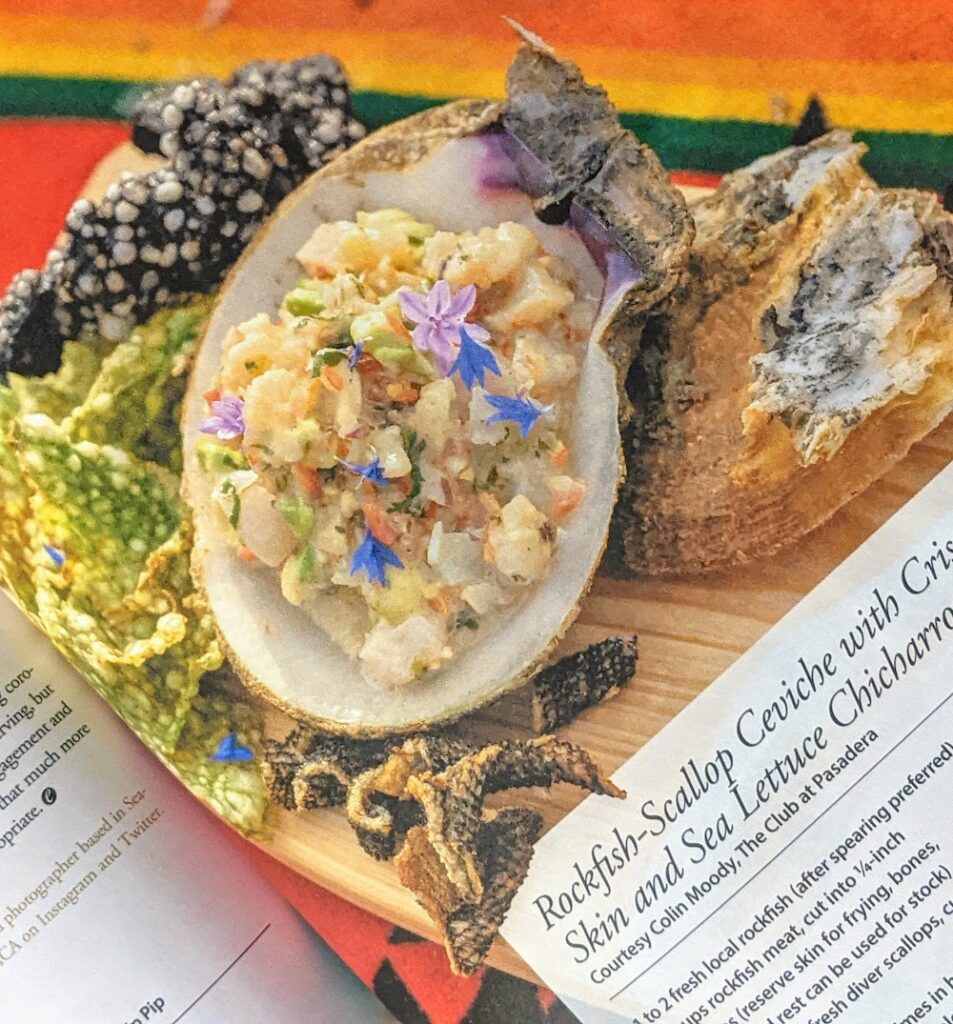 Way down in Big Sur, he turned the free divers’ catch into rock crab chowder, brown butter seared limpet filets and scallop-rockfish ceviche. (Full disclosure: My open sea kelp harvest really made the dish.)
