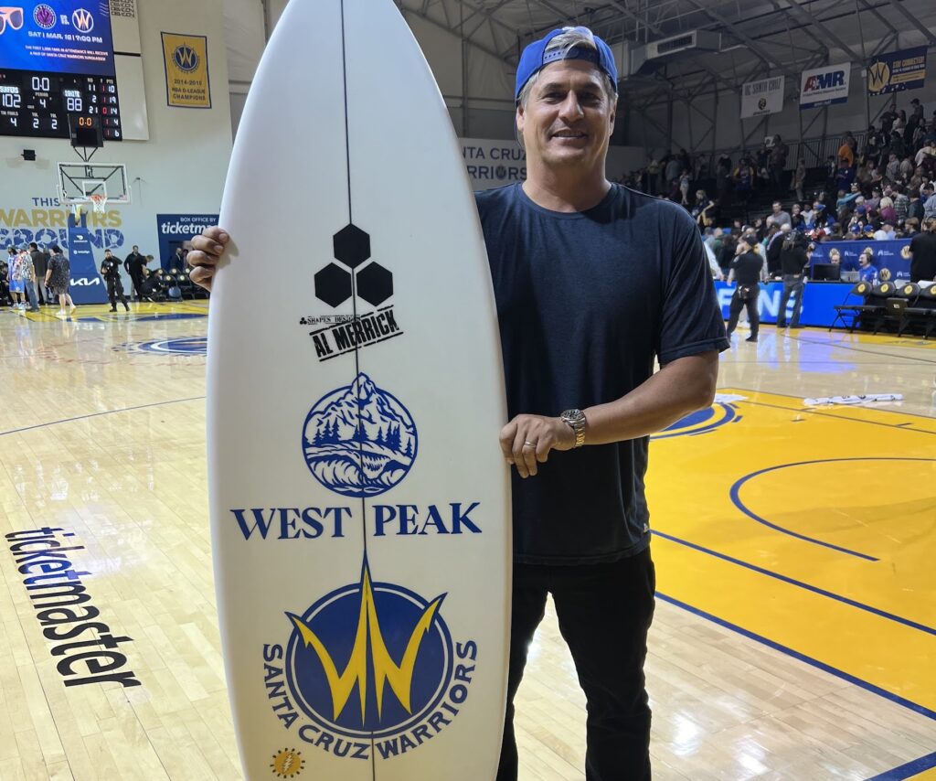 Another unexpected place: in the hands of decorated West Peak “ride-or-dies” who serve as on-board ambassadors (as in on-surfboard). The name-check roster, that West Peak aids with contest fees and equipment, includes Santa Cruz pro surfers Autumn Hays, John Mel, Shaun Burns, Wilem Banks, Alo Sleiber, Chad Underhill-Meras and Sam Coffey.