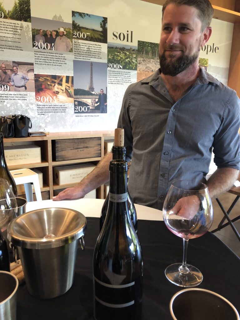 En Route 2022 Pinot Noir, Hallberg Ranch – Winemaker Michael Accurso of En Route and Far Niente’s Post & Beam, presented this wine, his inaugural vintage from Hallberg. I was immediately taken by its very friendly and inviting nose, which spoke of a summer berry pie. From his previous experience at Goldeneye in Anderson Valley, he has a preference for making soft, approachable Pinot Noir with lots of red fruit, in this case pomegranate, ollalieberry and boysenberry. Nobody else got those flavors in their Hallberg, although some did have a smidge of blood orange, which is pretty attractive in this wine. Accurso is very excited about 2023: so are we.