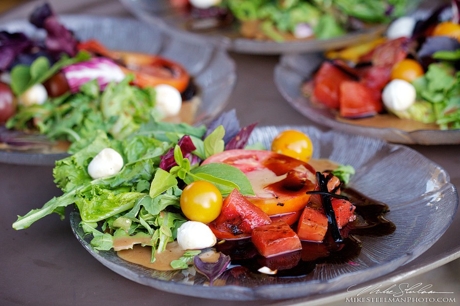 In fact, just as it should be at a farm or vineyard dinner, the home-grown, still-alive heirloom vegetables, just picked from Serendipity Farms’ and Kasky and Rohan’s own garden were the real stars of the he meal. Some elevated other dishes, but many stood alone as some of most deeply flavorful contributions to the meal, like the Paradise caprese of garden heirloom tomatoes, candied basil, grilled watermelon and purple haze basil, or the simple medley of Tonda di Parigi carrots and red beets.