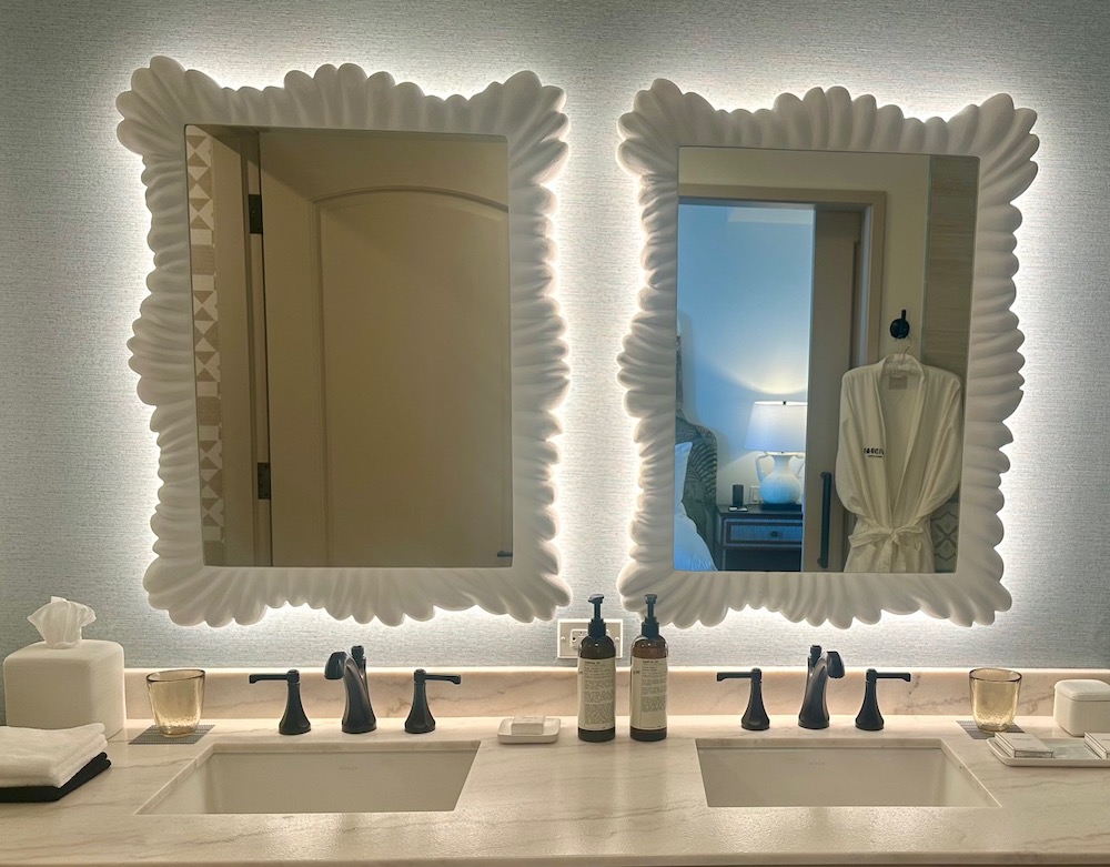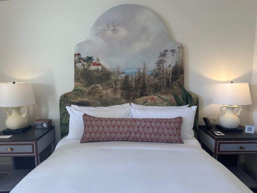 La Bahia Hotel & Spa has 155 luxury guest rooms and 29 suites, each with a whimsical hand painted headboard depicting “Santa Cruz as a dreamscape.”