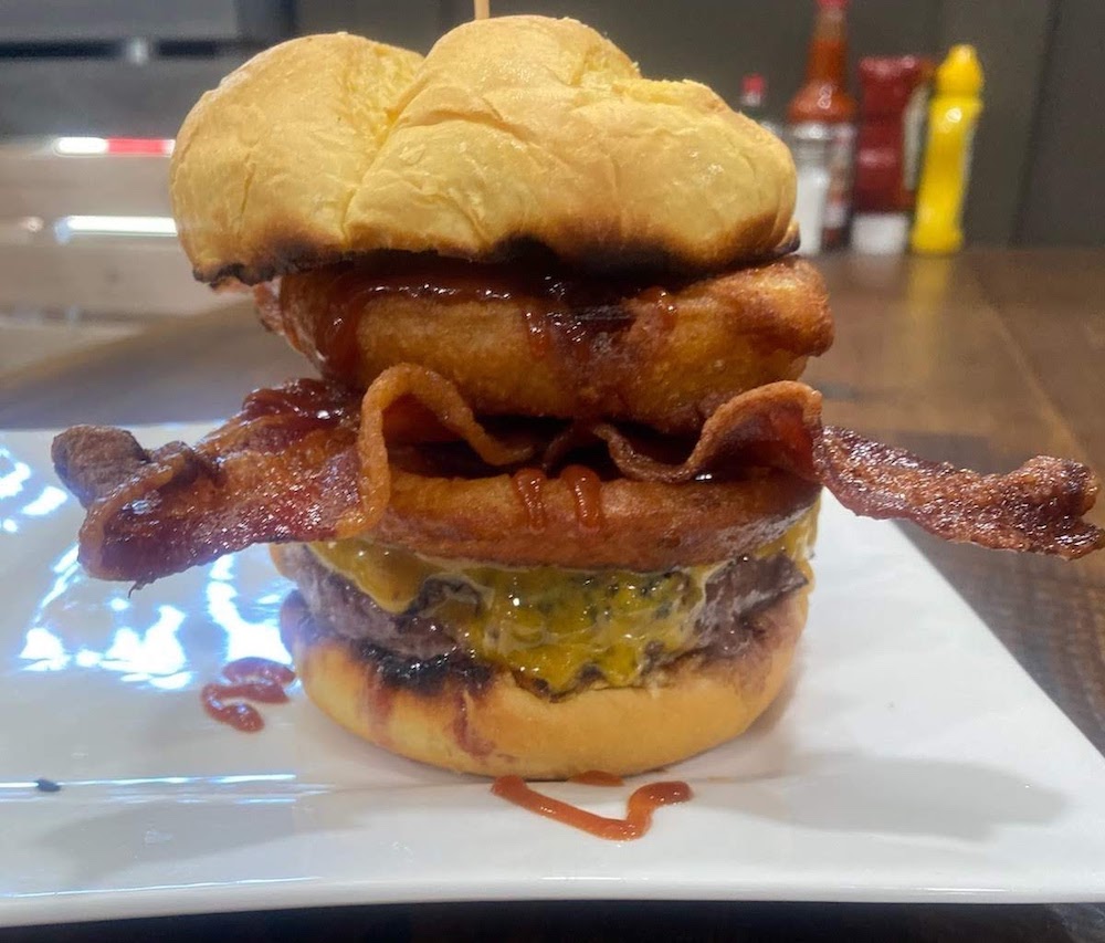 And there’s still more rib-sticking somethings arriving too, including shrimp skewers, fried pickle spears, pizzas, tacos, burgers, loaded baked potatoes, Philly cheese steaks, and a section of the menu titled “heavier options”—if the preceding items weren’t weighty enough—with plates like char-roasted salmon, flap steaks, smoked rib tips and saucy swordfish.