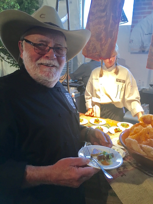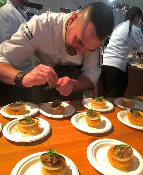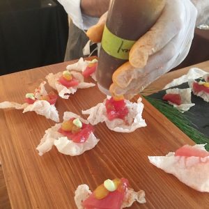 Here is Porters in the Forest chef Johnny DeVivo’s hand garnishing succulent bites of yellowtail sashimi served with friend rice, avocado and yuzu. More participating local chefs appear in our photo round up…