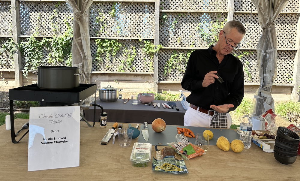 Both chowders fulfilled their missions beautifully, and special attention was taken by both contestants to carefully pair their chowders with the proper CRU Winery Chardonnay. That, I must say, took a bit of research and a lot of noodling.