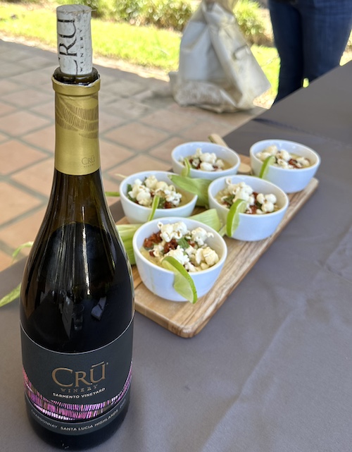 October 10, 2025 – CRU Winery in Soledad was once again the site for a tasty afternoon of sipping on great single vineyard Chardonnays and Pinot Noirs, while grooving on the fabulous scenery, indulging in a well-stocked grazing table and listening to live music.