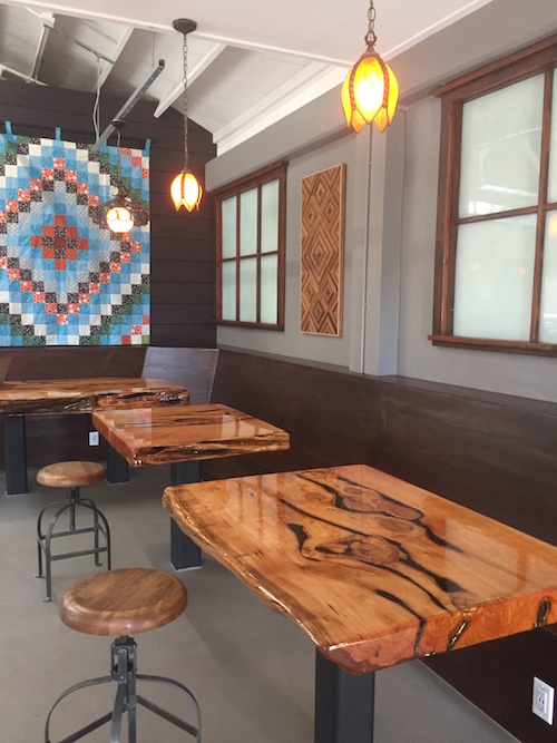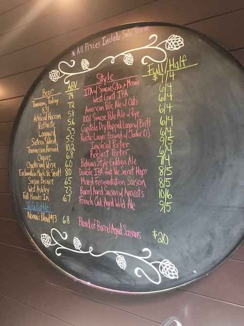 October 3, 2017 – The first customers started arriving just a few hours ago as the “soft opening” of Sante Adairius Rustic Ales‘ new tap room got underway. The long-awaited second location on Water Street in Santa Cruz is much more spacious than the original Capitola tap room, with a warm, homey vibe, 18 taps, bottled beer for sale and a few food items.