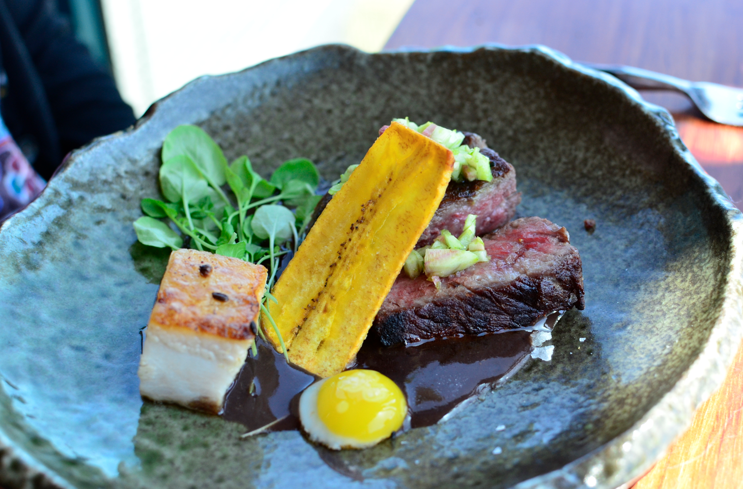 Cox is also proud of the “plate program” he’s starting at Sierra Mar, commissioning hand-thrown pottery and hand-blown glass made by local artisans to serve his delicious creations.