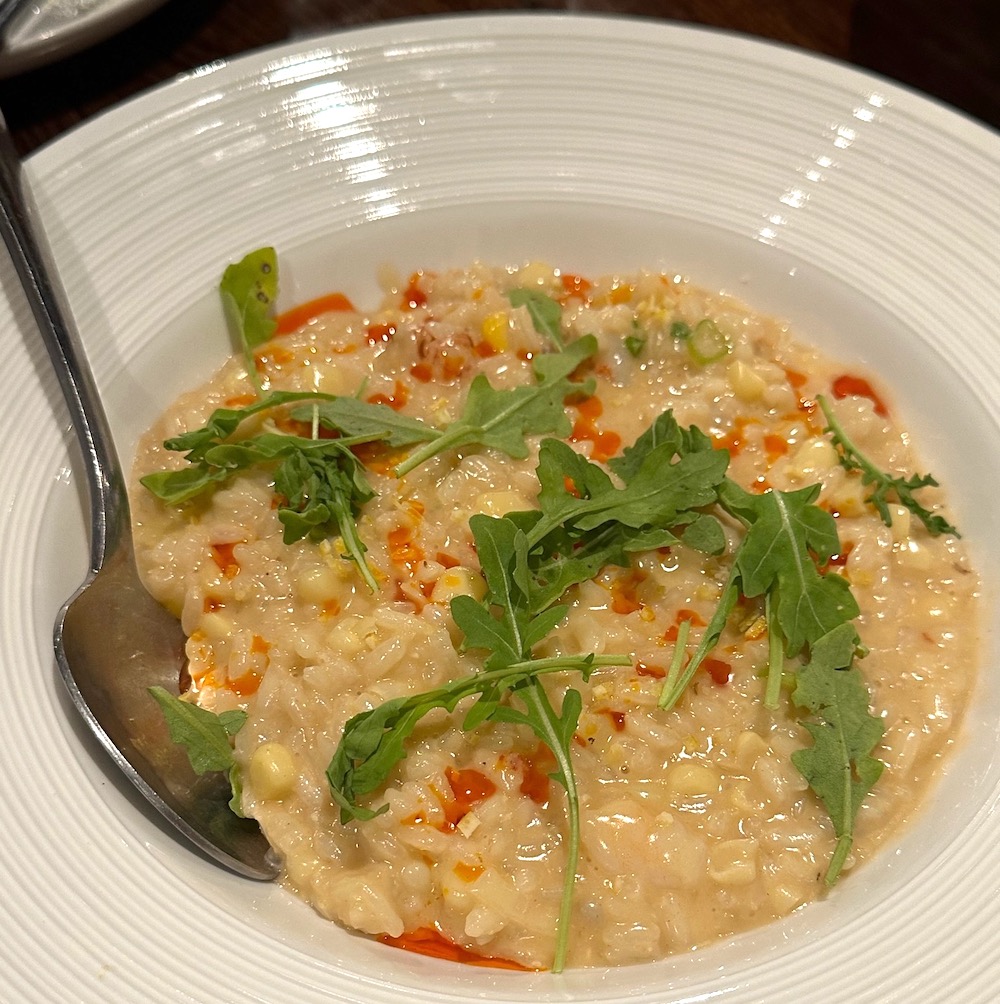 The Italian chop salad was a favorite at our table and perfect for a hot summer night, but the star of the evening was the rock shrimp and corn risotto with Calabrian chili oil, pea shoots and Parmesan—creamy and crunchy at the same time and full of flavor.