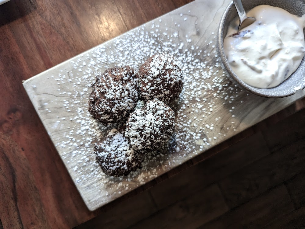 Another inventive endeavor comes through with the sweet potato beignets and accompanying bowl of vanilla bean icing with roasted pecan crumbles. This one left me wishing for an airier, flakier and less charred version, but hey, I still had to admire the ambition.