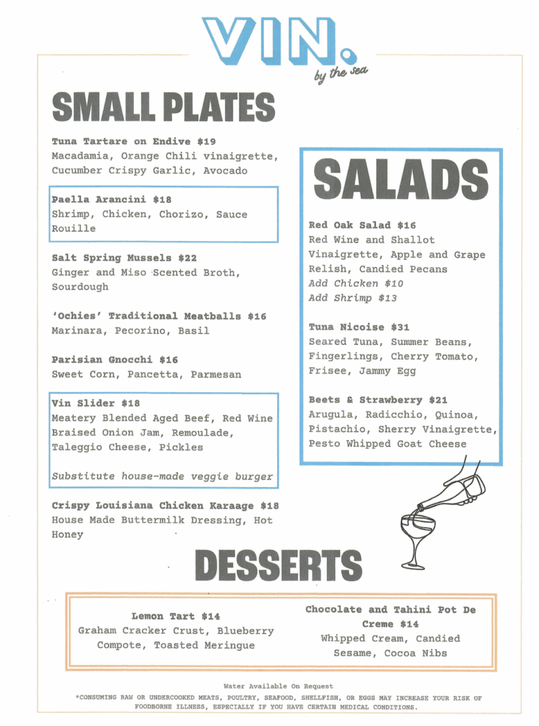 It’s been a long wait, but the much-anticipated wine bar and kitchen featuring chef-driven cuisine inspired by great wine is now open in a space that used to be a sculpture gallery. Vin By The Sea softly opened over Labor Day weekend, to a big crowd.