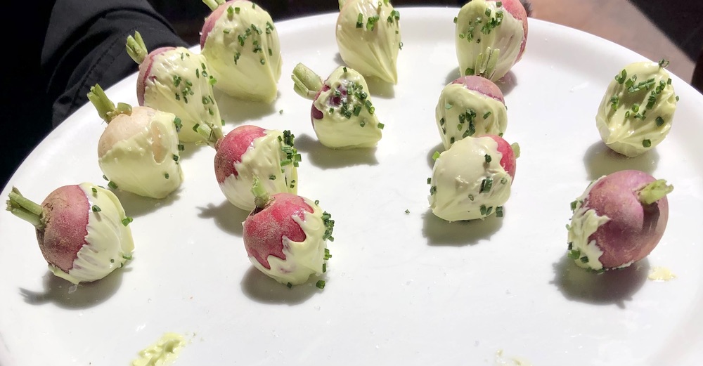 It was a party on the VIP patio, with servers constantly passing amazing food, including little cones of fried calamari, meatballs and beautiful butter dipped radishes of multiple hues. If ever there was a worthwhile $80 VIP ticket, this is it. Mark your calendars for the second Saturday of May next year—May 9, 2026—for this one. Great music and fantastic shopping add to the excellent vibe.