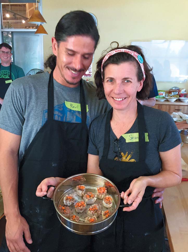 Many local food teachers take advantage of the kitchen classroom at New Leaf Community Market on the Westside of Santa Cruz. So check its website or EMB’s free weekly enewsletter for listings. Andrea Nguyen, the affable author of a variety of Vietnamese cookbooks, occasionally teaches classes in the New Leaf space. Nguyen admits, “This is ridiculous to say but all three of my fall classes have sold out. It happened in less than 48 hours. I’m going to open another class for December, but that will go fast, too.” Sign up for her mailing list for a better chance to enroll in her unique classes, like how to make dim sum from scratch, DIY tofu, Asian dumpling boot camp and Viet street food. “It’s a fun culinary workout, so to speak,” she says.