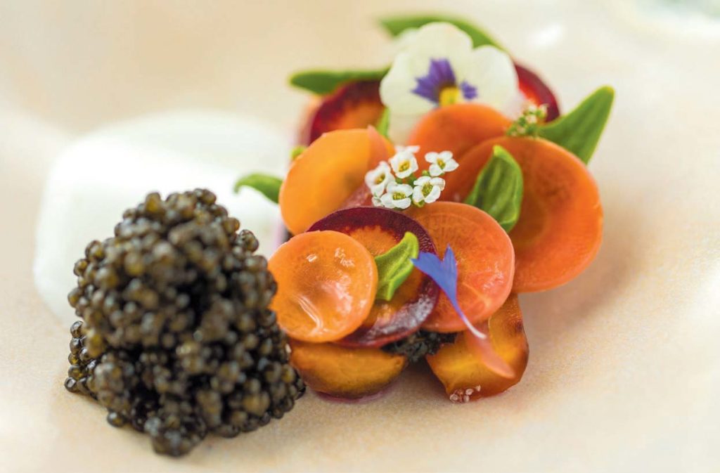 Standing in L’Auberge Carmel’s leafy courtyard, Aubergine executive chef-director Justin Cogley tells a story about a chef dinner at the three Michelin 3-star Alléno Paris back in 2016. Diplomats were in attendance, master chefs occupied the kitchen, Monterey abalone and French lamb starred on the plate.
