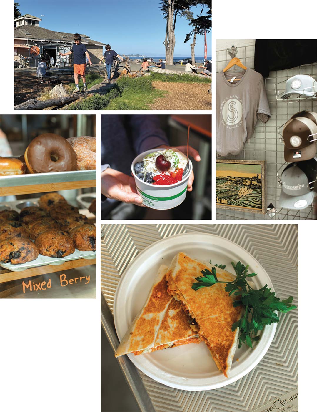 Three years later—after working with the state park staff on the details and transforming the storage space with a small kitchen, order counter and shop—she opened Steamer Lane Supply. The dining room was easy—it’s all open-air picnic tables in the park, some shaded by Monterey cypress trees, some under the open sky and all with views of the ocean in the distance.