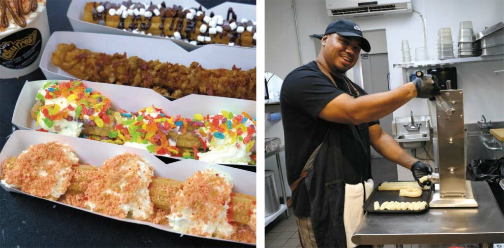 A stable home kitchen would allow them to keep their crowd pleasers (like their box of churros and churro bite bowls) and expand on the creative confections they had become known for—churros filled with caramel and topped with crushed peanuts and chocolate drizzle, and a bowl of churro bites topped with bacon bits and maple syrup.