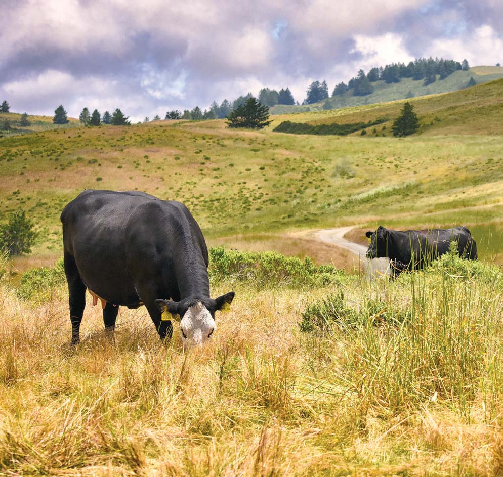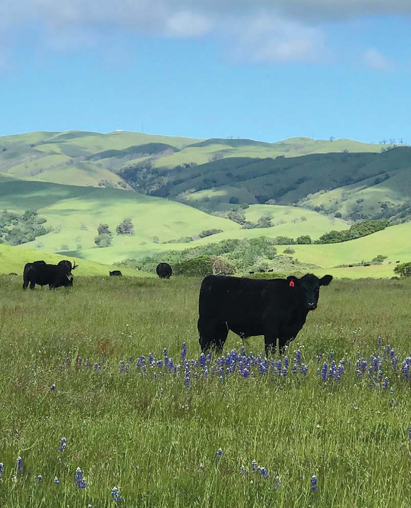 Cattle rancher Mark Farr owns and grazes about 800 acres on his home ranch in Salinas, and leases another 3,000 acres. His herd of black Angus cattle enjoys a bucolic lifestyle, grazing primarily on conservation properties in the Santa Lucia Mountains (including land owned by the Big Sur Land Trust), where they live a stress-free life, without the need for hormones or antibiotics.