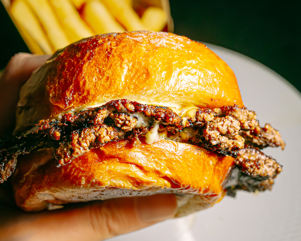 “We worked with vendors to test different patties, and found one with just enough bite and flavor, then it’s salt and pepper only, and a broil for a nice char on the outside,” Parks says. “We’re not overthinking it.”